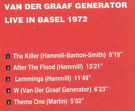 Van Der Graaf Generator Live In Basel 1972 Van Der Graaf Generator Live In Basel 1972