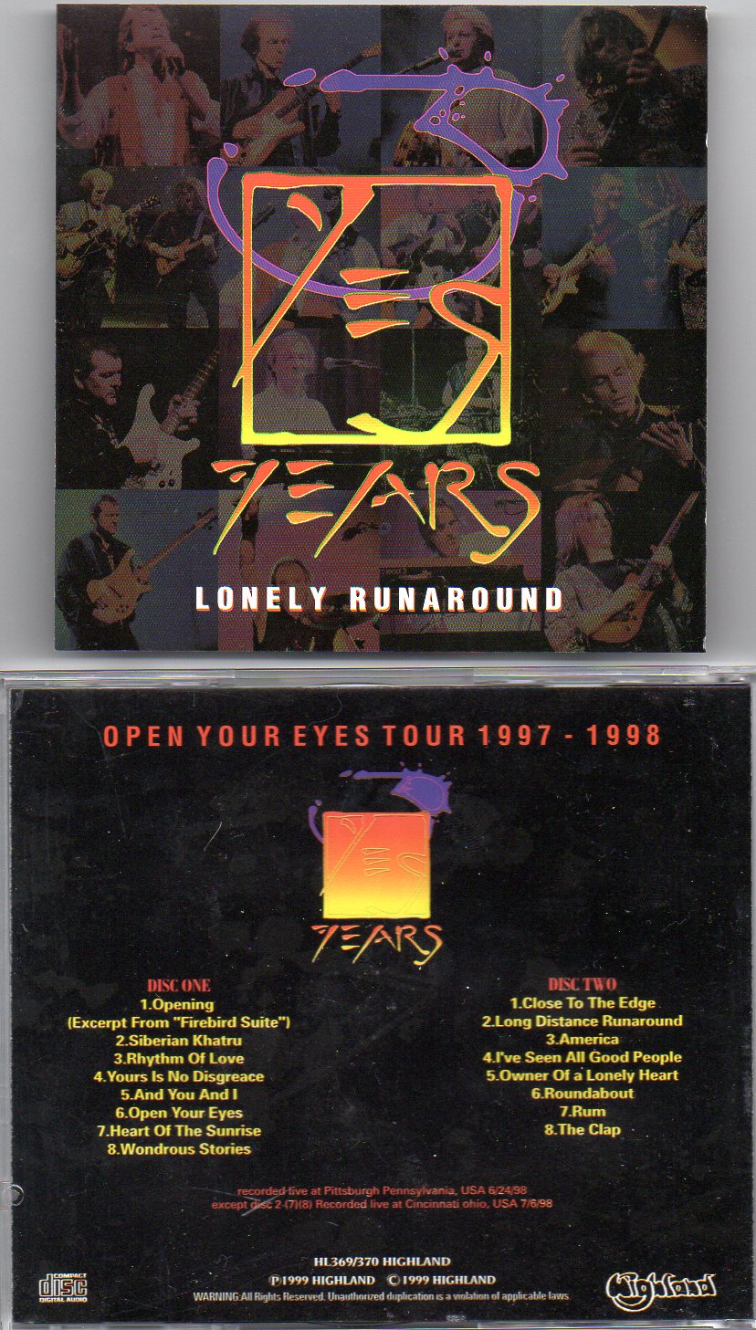 Yes Lonely Runaround Highland 2 CD SET Pittsburg Pennsylvania USA June 24th 1998 Yes Lonely Runaround ( Highland ) ( 2 CD SET ) ( Pittsburg , Pennsylvania , USA , June 24th , 1998 )
