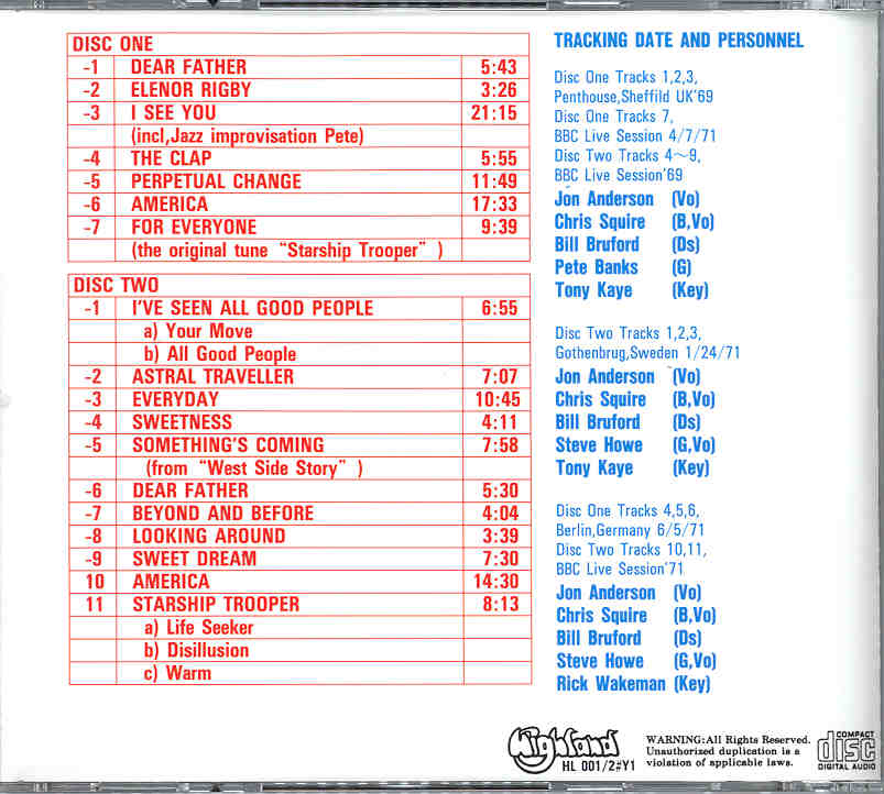 Yes – Lost Yes Years ( Highland )( 2 CD SET ) ( BBC Sessions ’69 & ’71 + Live Sweden , Germany & UK )