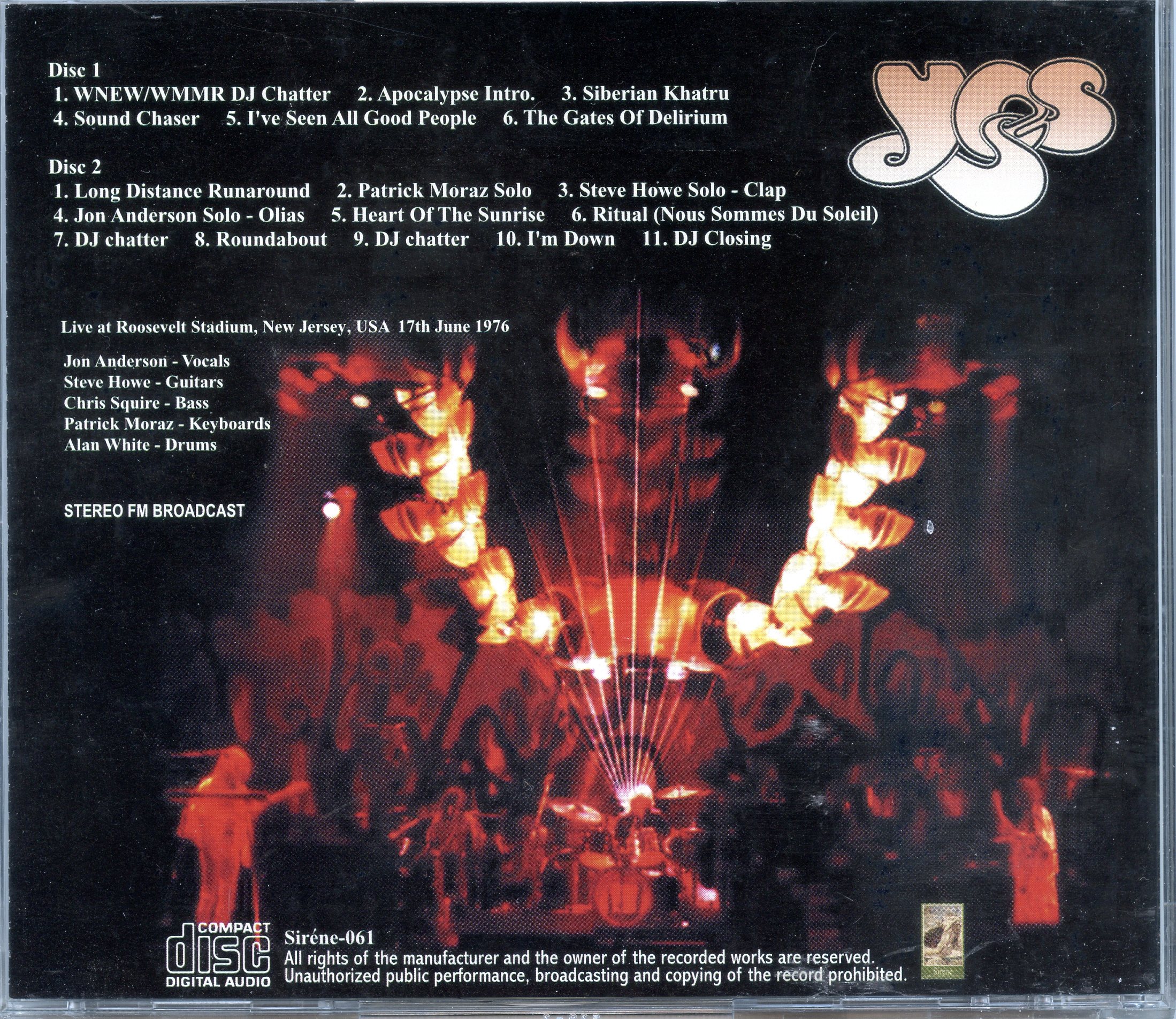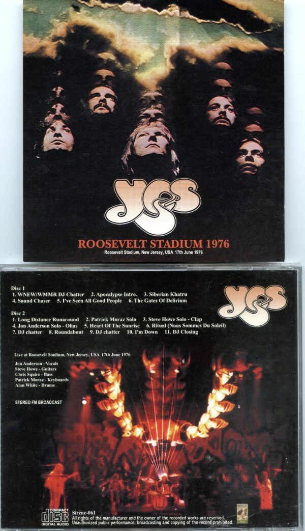 YES Roosevelt Stadium 1976 2 CD SET SIRENE Roosevelt Stadium New Jersey USA June 17th 1976 YES Roosevelt Stadium 1976 ( 2 CD SET ) ( SIRENE ) ( Roosevelt Stadium, New Jersey, USA, June 17th, 1976 )