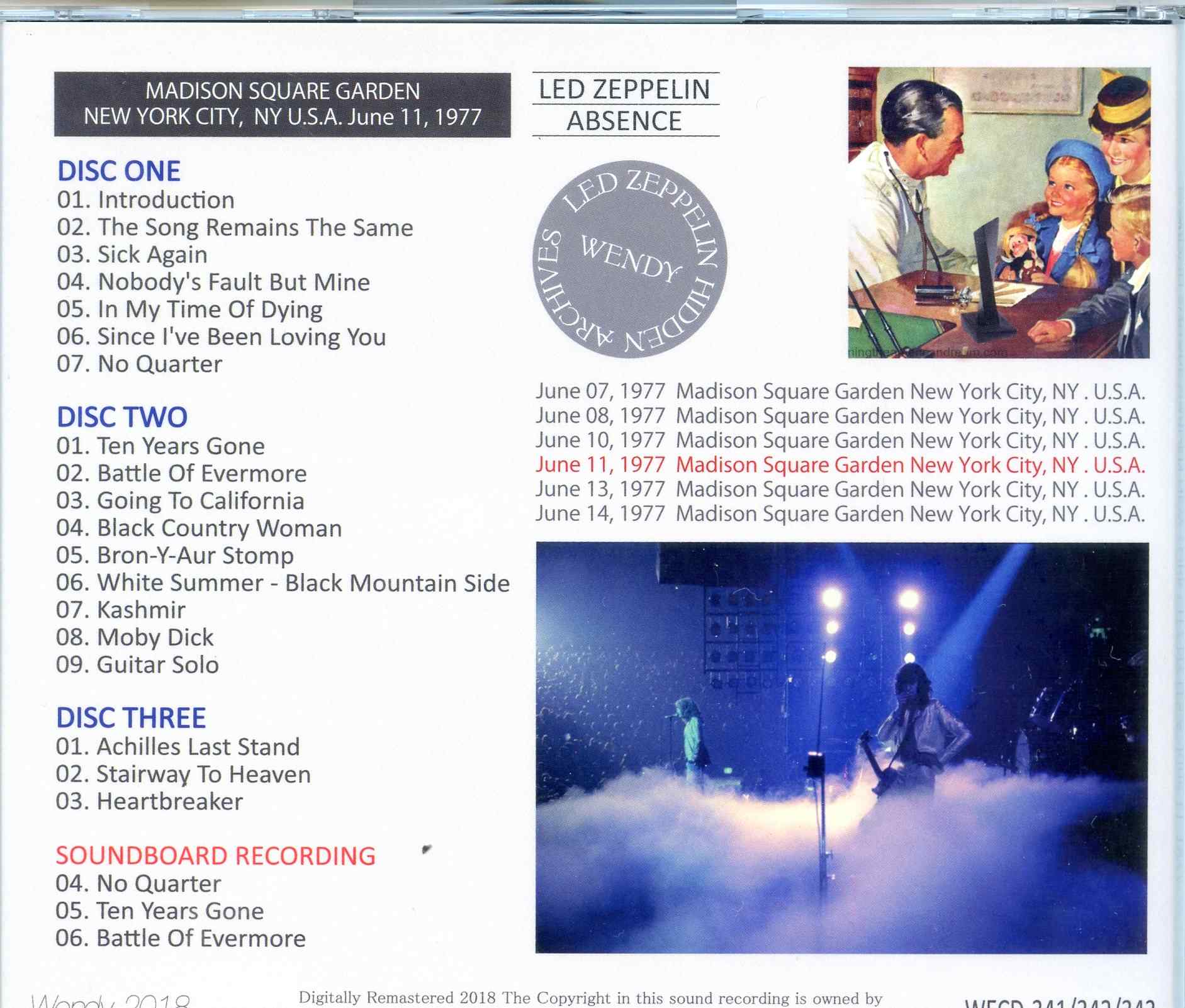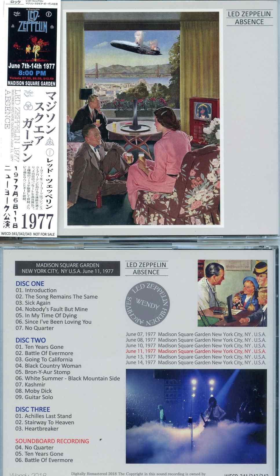 Zeppelin Absence 3 CD SET Wendy MSG New York USA June 11th 1977 Zeppelin Absence ( 3 CD SET ) ( Wendy ) ( MSG, New York, USA, June 11th, 1977 )