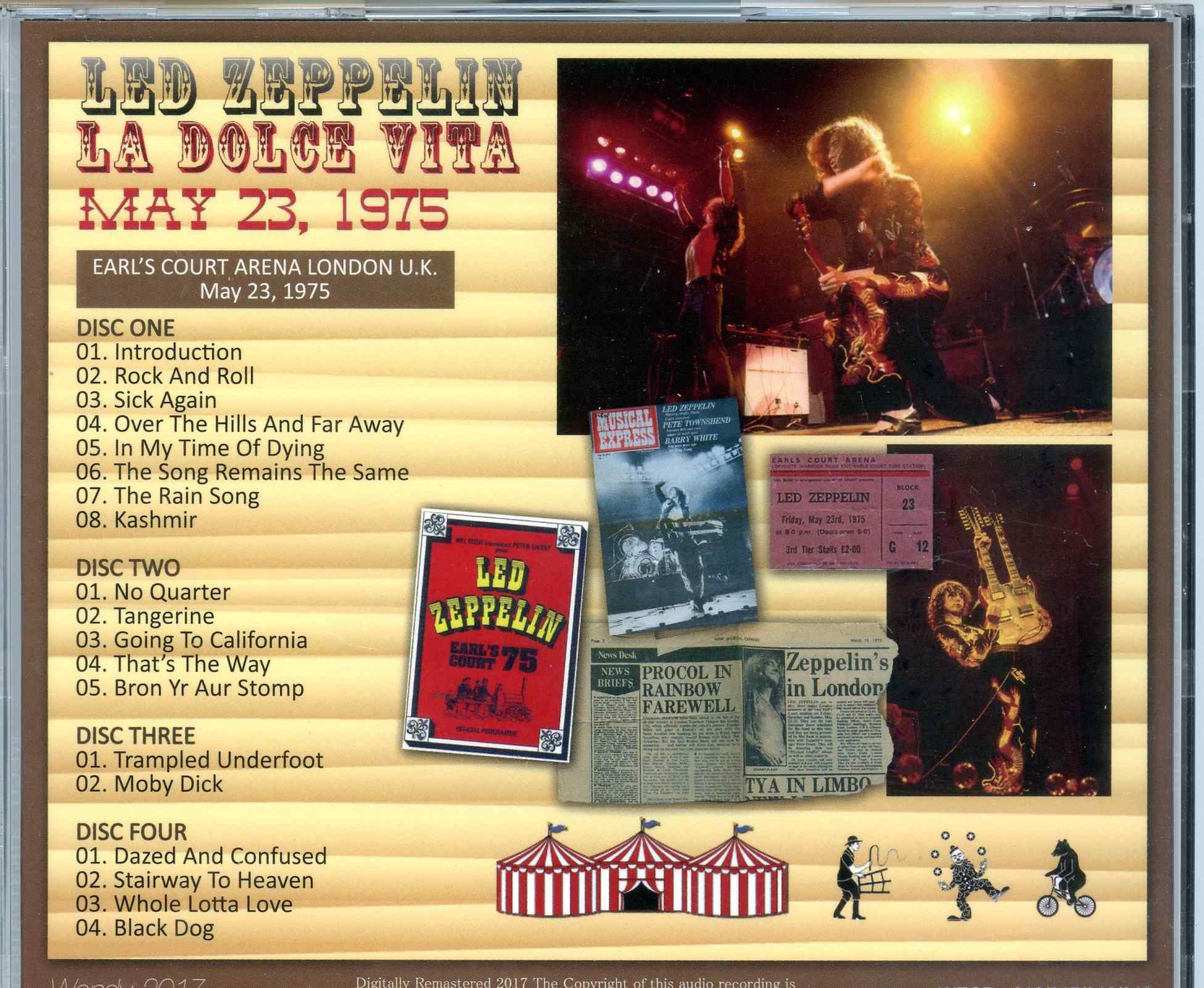 Zeppelin La Dolce Vita 4 CD SET Wendy Earls Court Arena London UK May 23rd 1975 Zeppelin La Dolce Vita ( 4 CD SET ) ( Wendy ) ( Earls Court Arena, London, UK, May 23rd, 1975 )